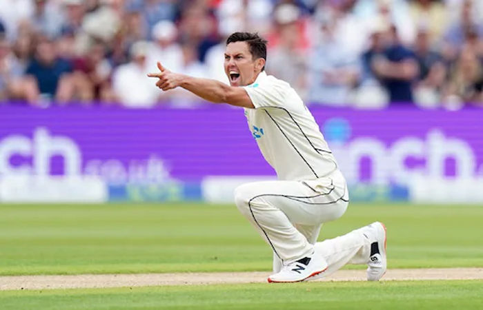 New Zealand were bowled out for 553 in the first innings of the second Test at Trent Bridge. When the match ended the next day, England were 90 for 1. New Zealand are currently 463 runs ahead of England. During New Zealand's innings where Daryl Mitchell (190) and Tom Blundell (106) played a key role in leading the Kiwis to 553, fast bowler Trent Bolt made 16 off 18 balls in the last over of the Kiwi innings. Bolt hit 4 fours in his innings.